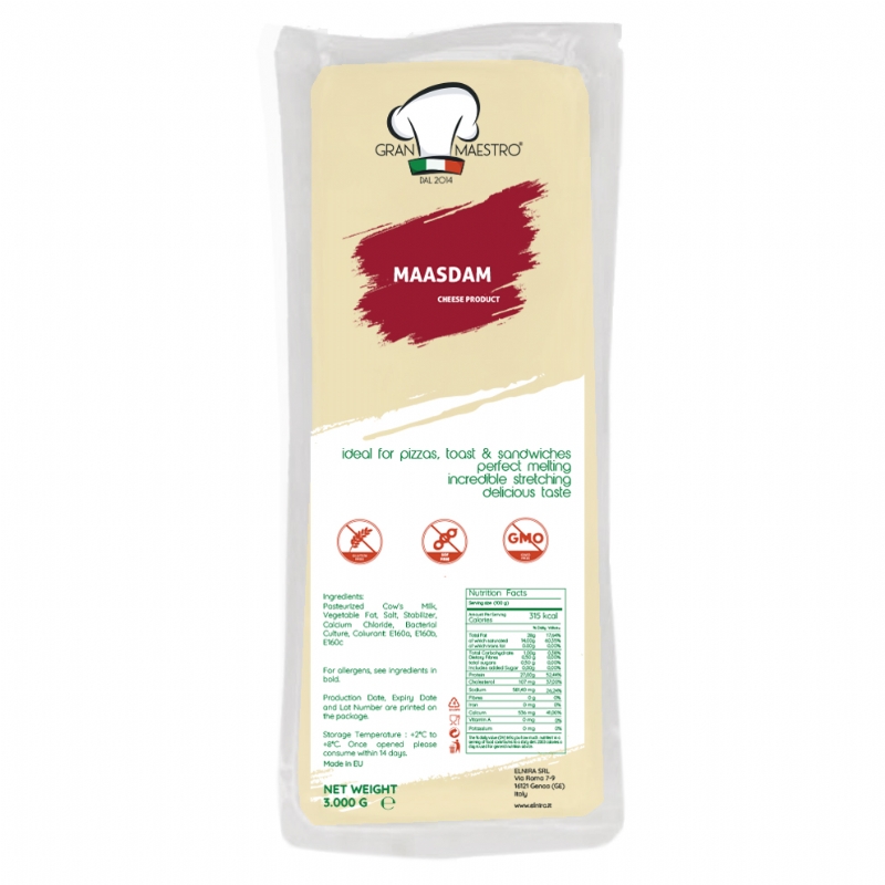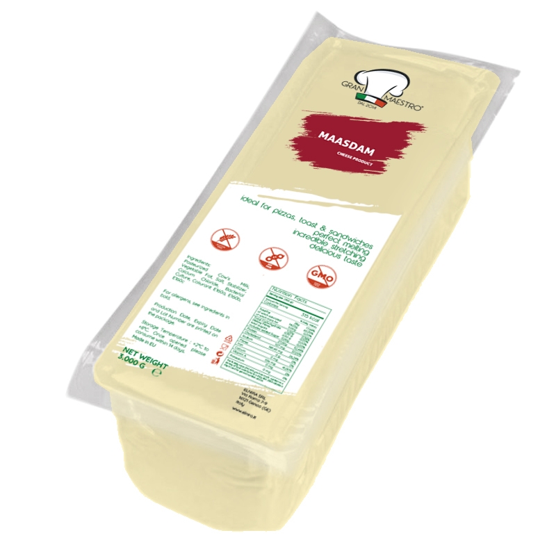 Delicious Analogue Maasdam Cheese made with %100 Milk and Vegetable Fat.