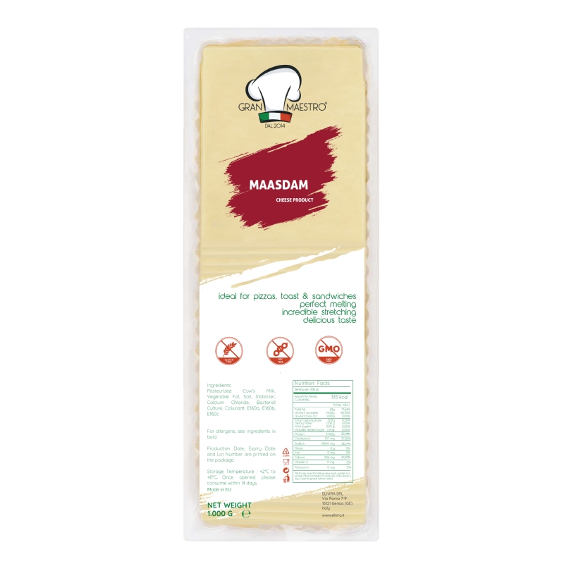 Beside the wide Packaging variety we are able to supply all our Analogue Sliced Maasdam Cheese with a long Shelf Life for our Retail, HoReCa, Wholesale and Industrial Customers.