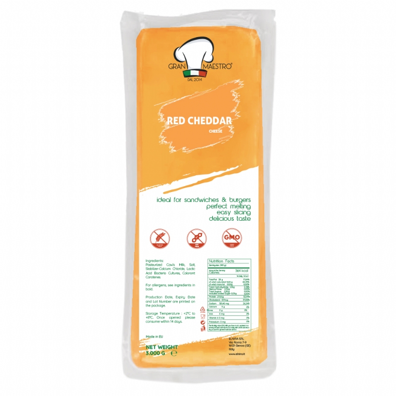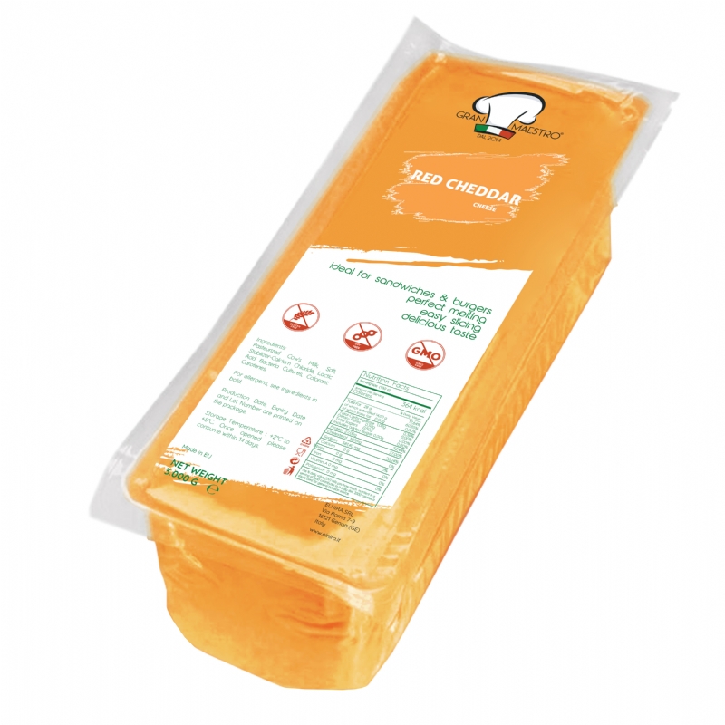 Delicious Block Red Cheddar Cheese made with %100 Milk and Milk Fat in Greece.