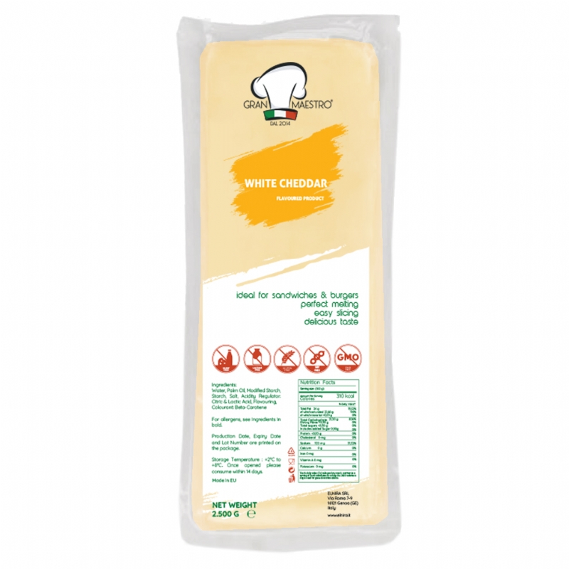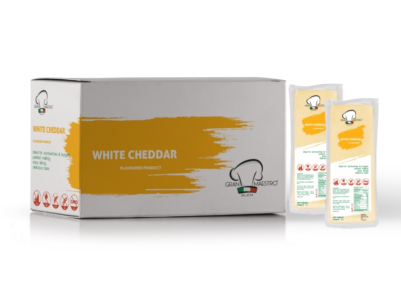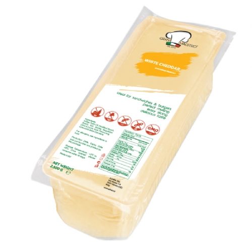 Delicious Block Functional White Cheddar Cheese made with Water, Vegetable Fat and Aromas in Greece.