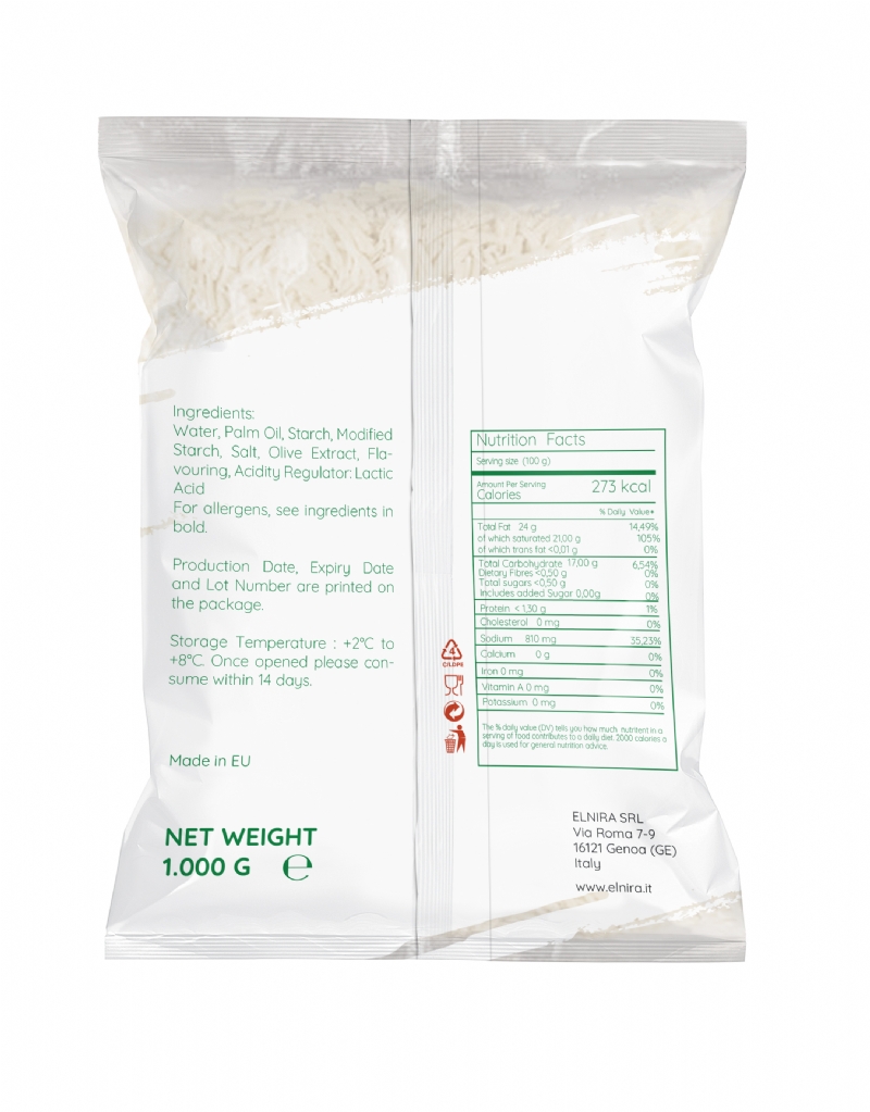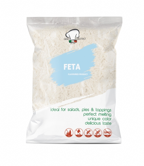 Delicious Shredded Functional Feta Cheese made with Water, Vegetable Fat and Aromas in Greece.