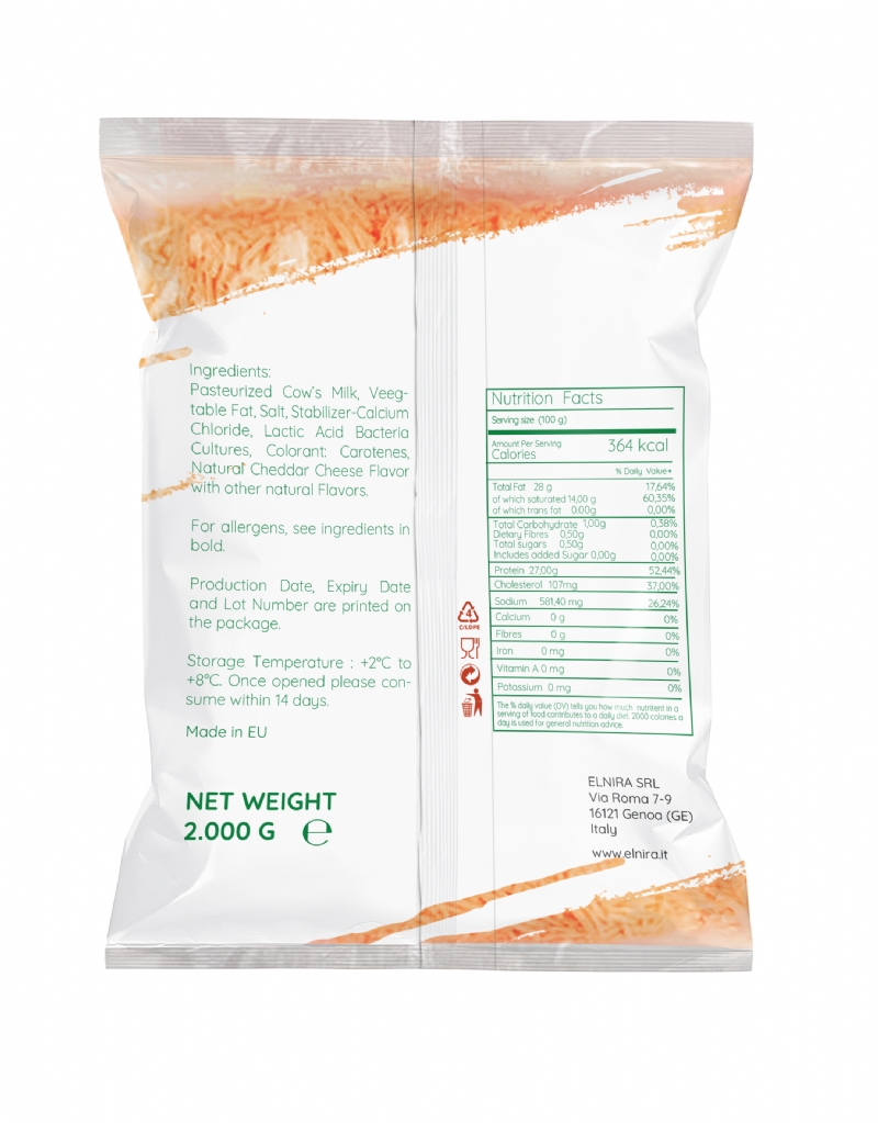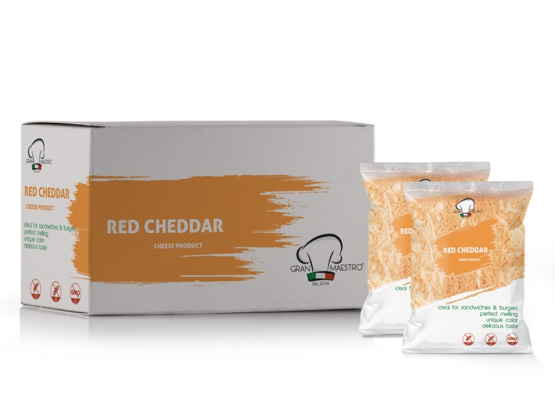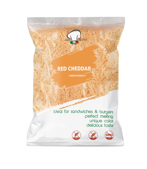 Delicious Shredded Alternative Red Cheddar Cheese made with %100 Red Cheddar Cheese and Imitation Red Cheddar Cheese in Greece.