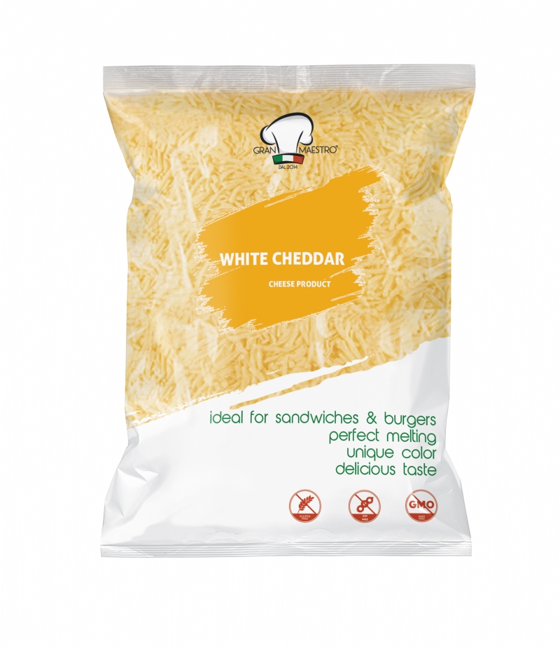 Delicious Shredded Alternative White Cheddar Cheese made with %100 White Cheddar Cheese and Imitation White Cheddar Cheese in Greece.